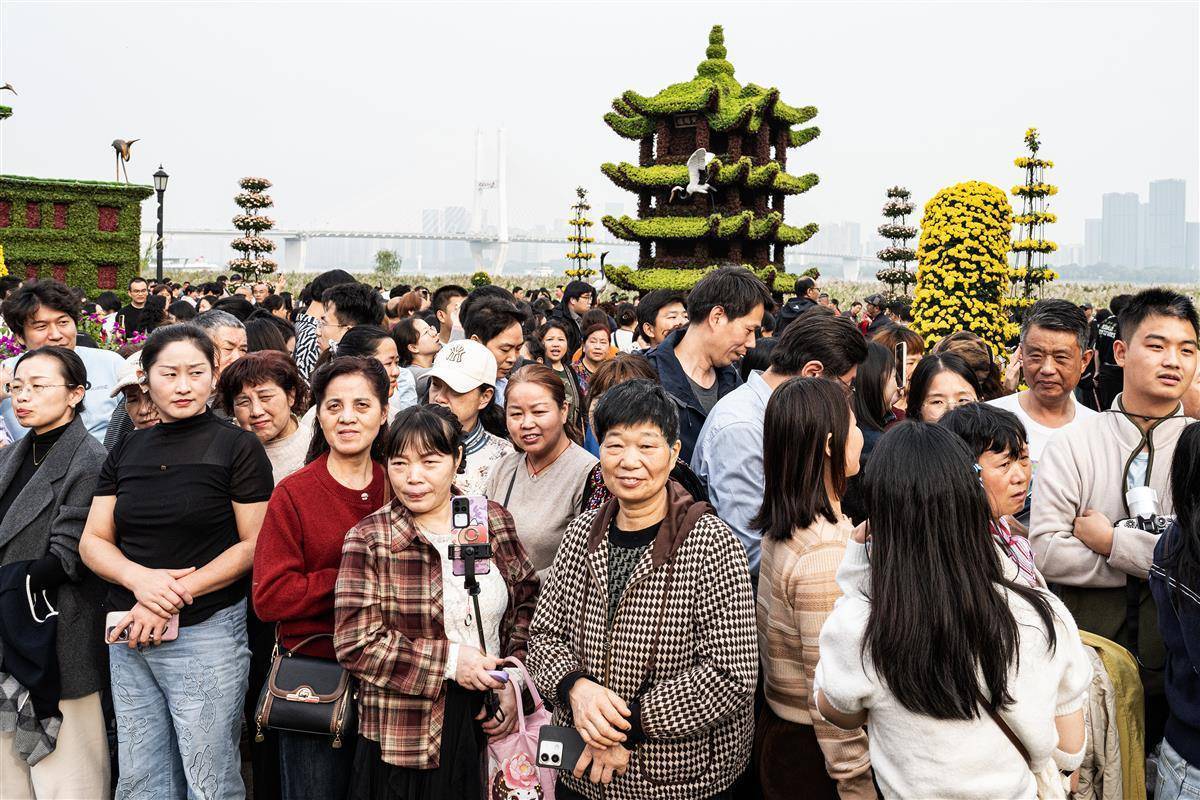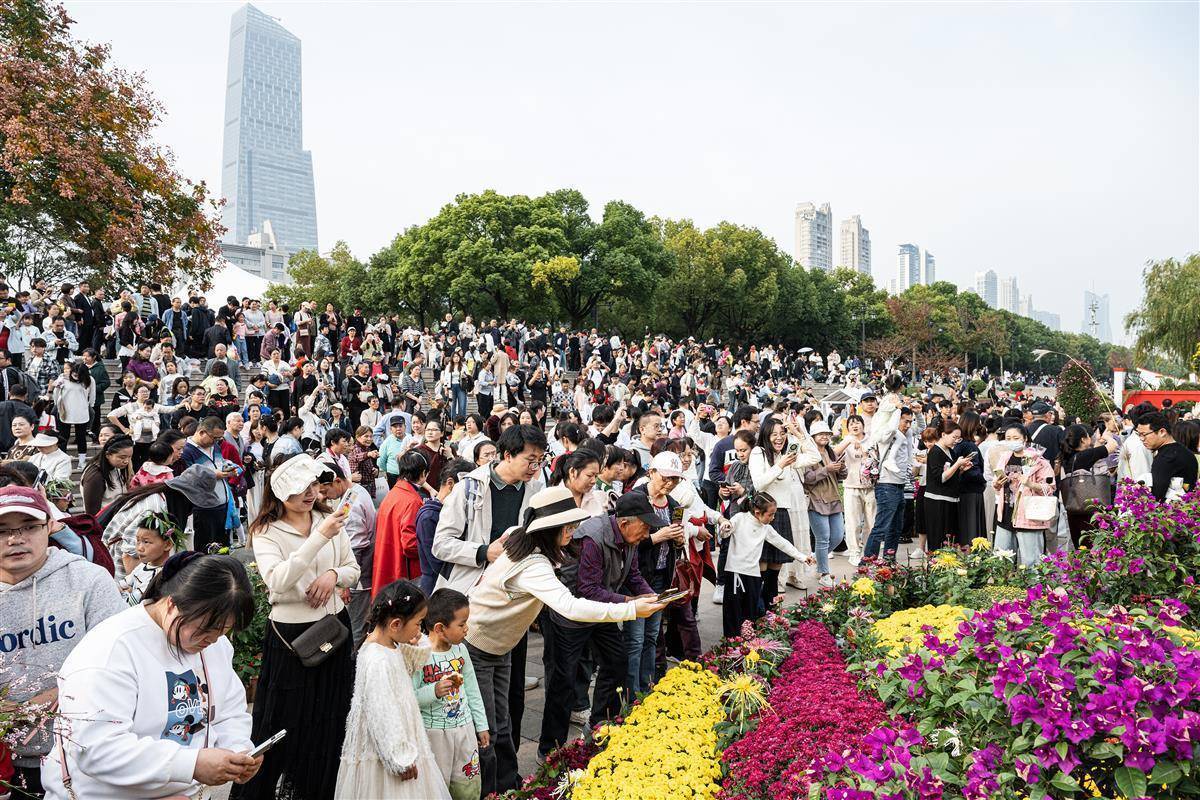 在武汉金秋菊展汉口江滩主展区亿正策略,市民和游客络绎不绝。(湖北日报全媒记者 任勇 摄)