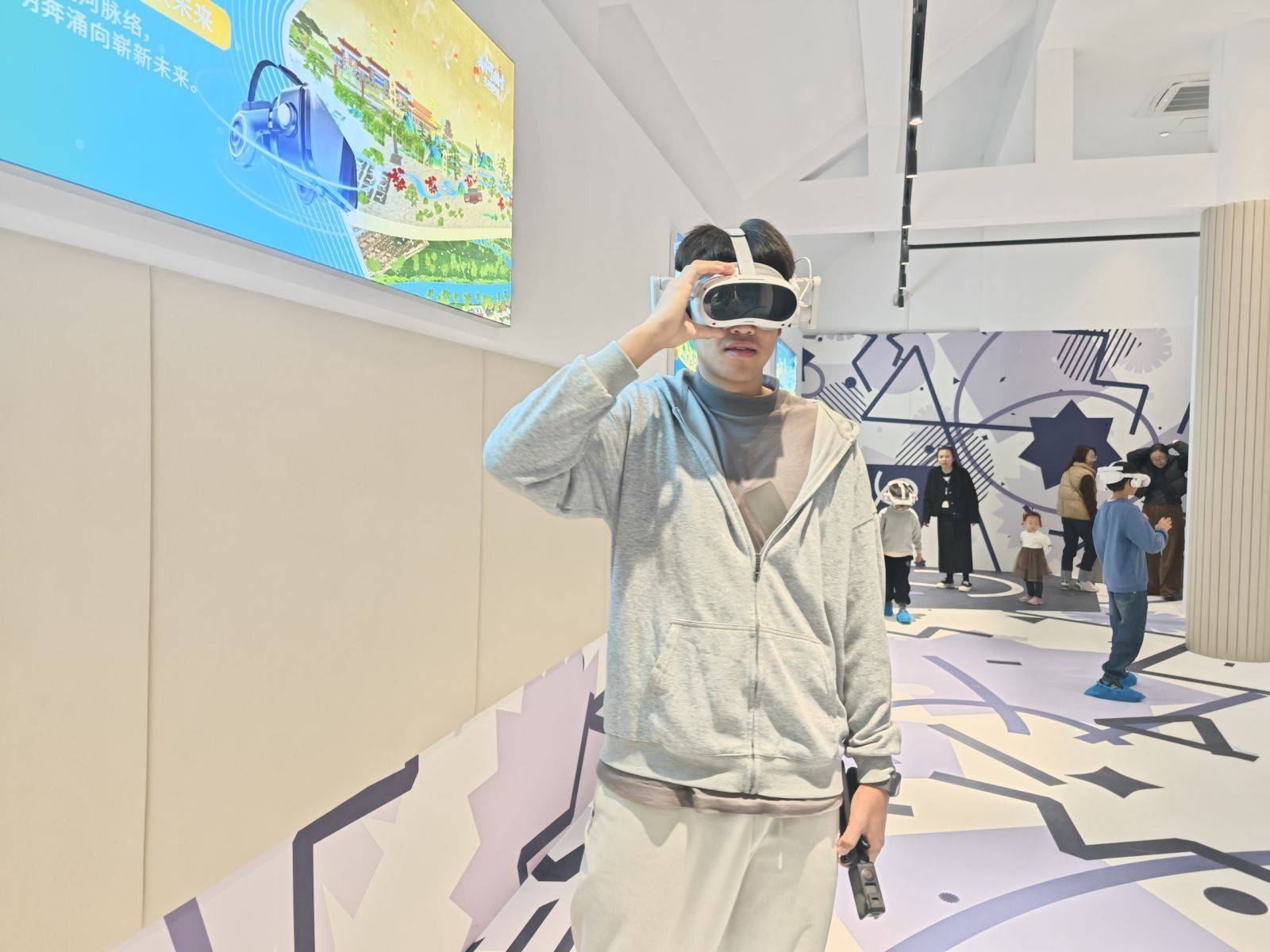 二层的VR设备前观众大家有序排队、佩戴VR眼镜点金股,在虚拟与现实交织的空间中,开启了一场沉浸式文化穿越之旅。